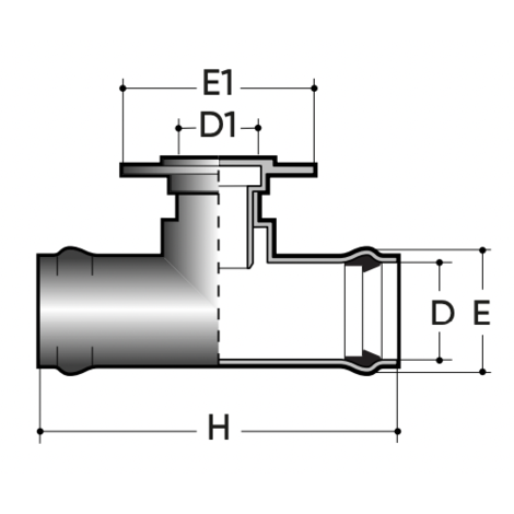 | TEE A 90° FLANGIATA | Напорни PVC-U тръби PN10 SDR 21 - SDR 26 |